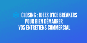 Un « ice breaker » ou « bris de glace » est simplement une manière d’introduire un entretien de vente (qu’il soit téléphonique ou physique). On parle alors d’ouverture (ou d’opener).